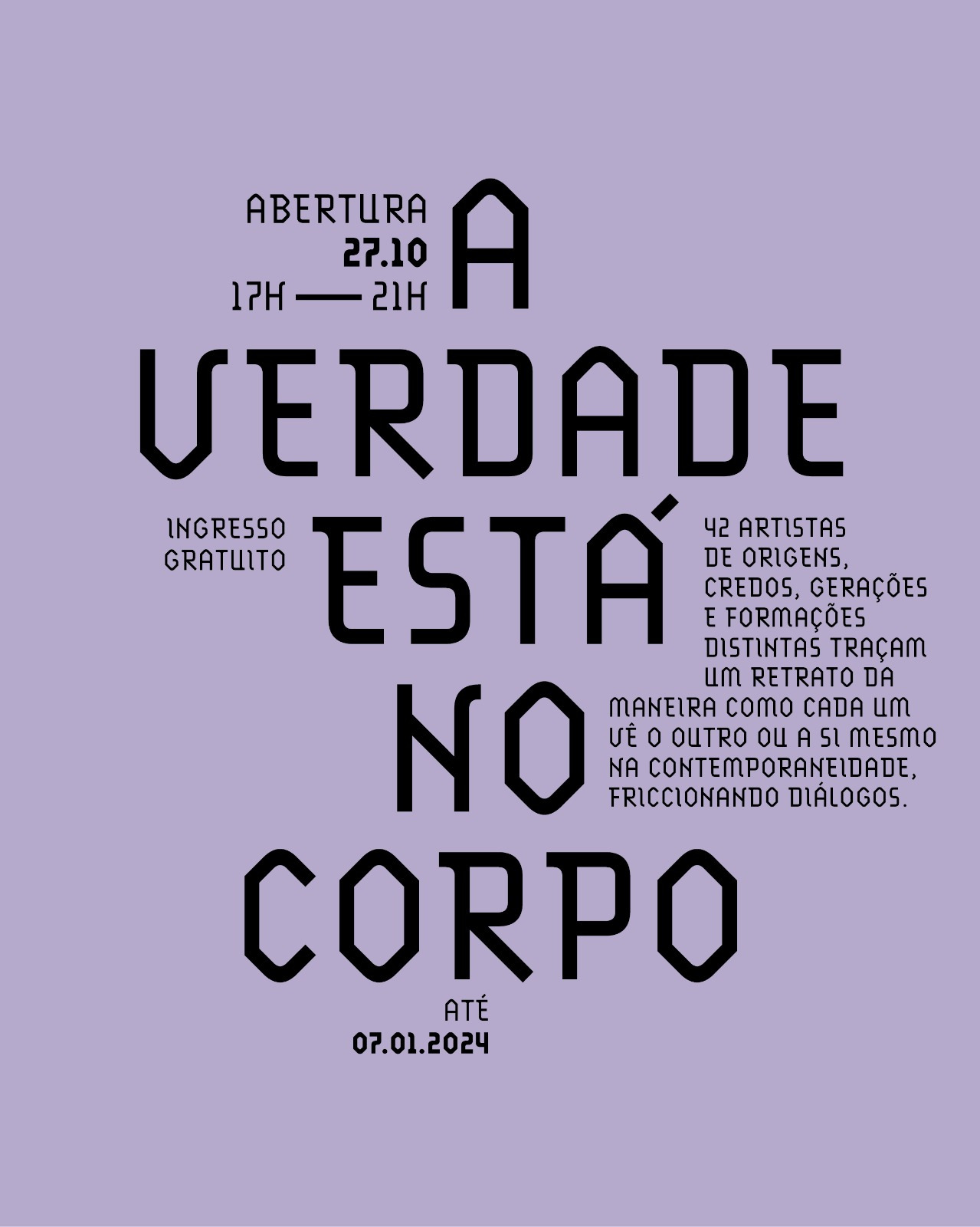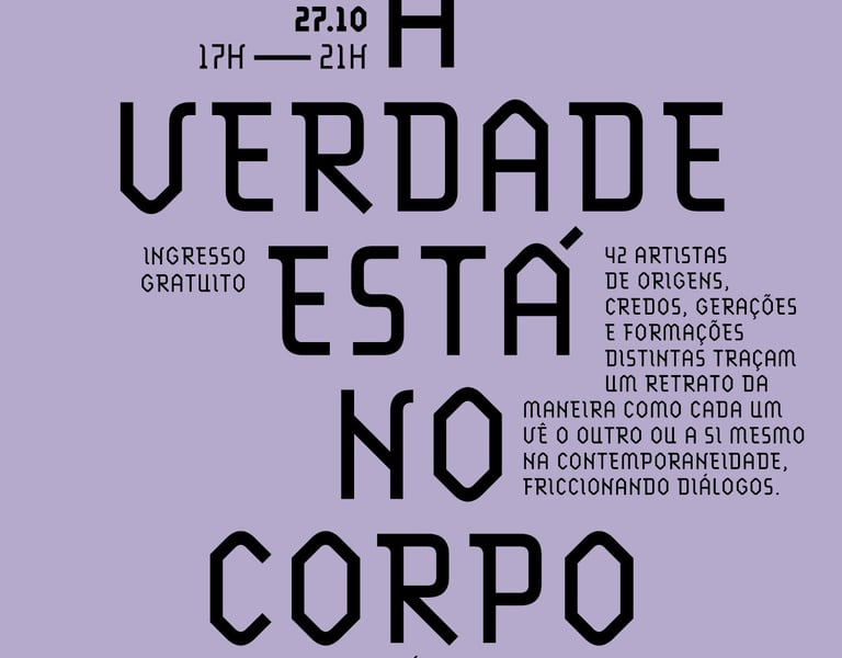 A exposição “A verdade está no corpo” traz obras de 43 artistas de diferentes origens, credos, gerações e formações. Os trabalhos expostos traçam um retrato da maneira como cada um vê o outro ou a si mesmo na contemporaneidade, friccionando diálogos.